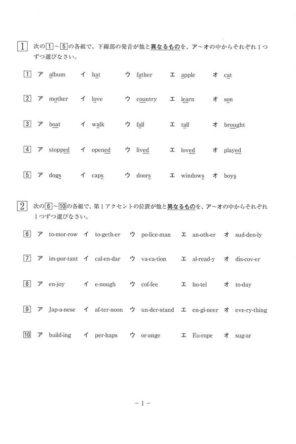 平成29年度入試過去問題 第3回(英語 問題)(1ページ目)|千葉敬愛高等学校の入試過去問