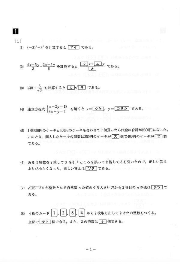 平成30年度入試過去問題 第1回[1/4]
