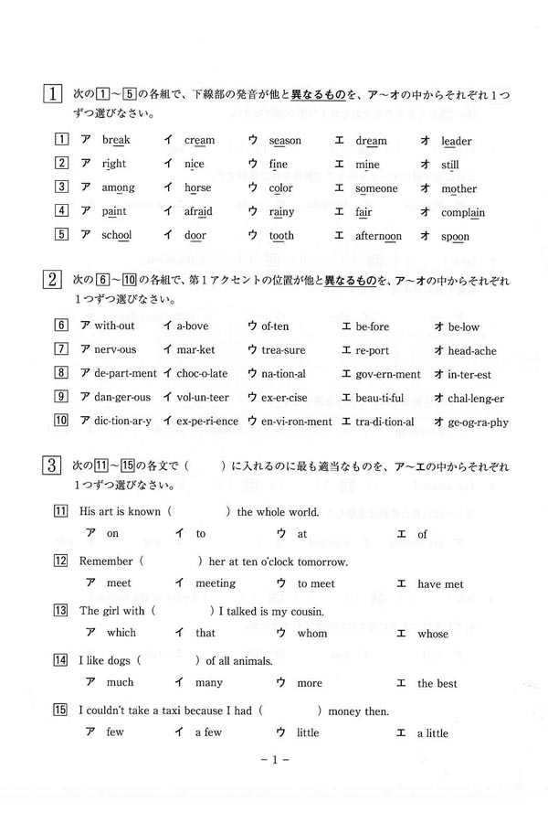 平成30年度入試過去問題 第2回(英語 問題)(1ページ目)|千葉敬愛高等学校の入試過去問