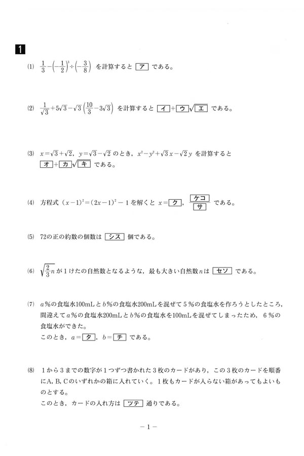 入試過去問(問題)(1ページ目)|千葉敬愛高等学校の入試過去問