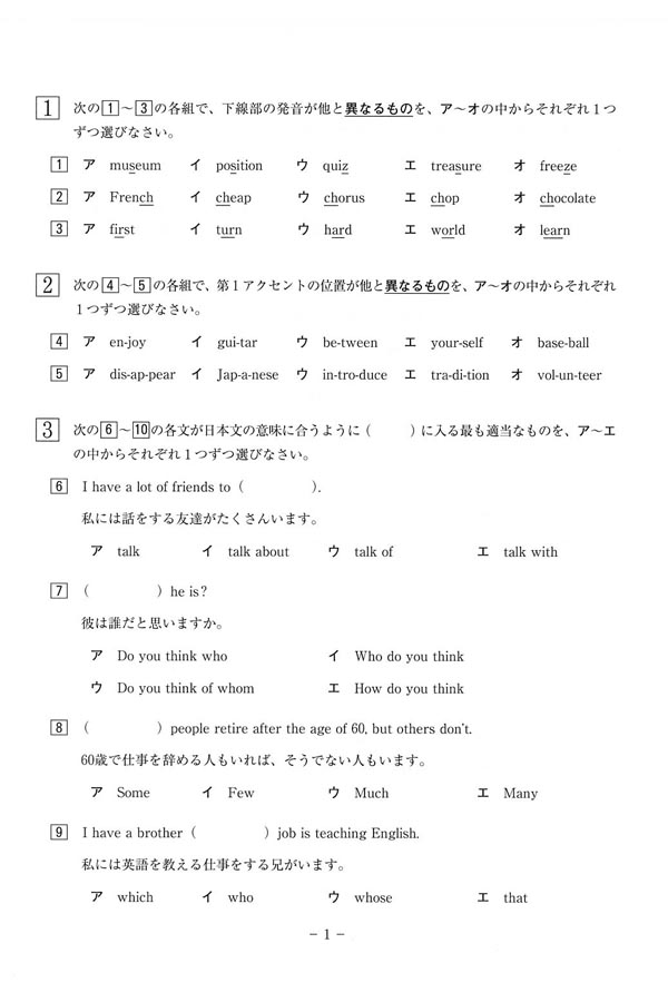 入試過去問(問題)(1ページ目)|千葉敬愛高等学校の入試過去問