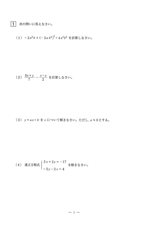 2023年度入試過去問題(数学 問題)(1ページ目)|日出学園高等学校の入試過去問