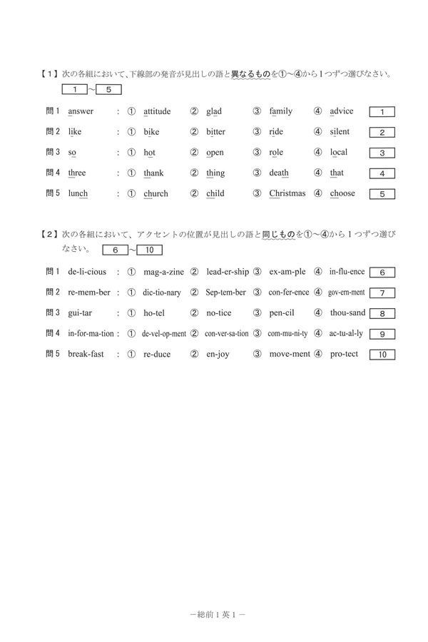 入試過去問(問題)(1ページ目)|木更津総合高等学校の入試過去問