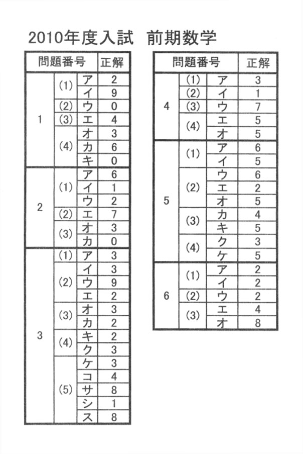 平成22年度入試過去問題 前期 (数学 解答)(1ページ目)|芝浦工業大学柏高等学校の入試過去問