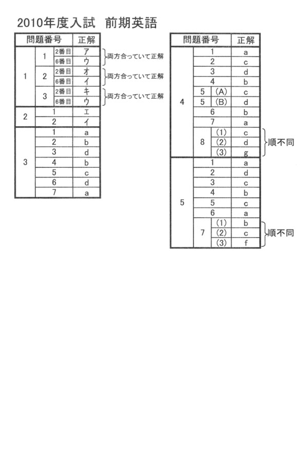 平成22年度入試過去問題 前期 (英語 解答)(1ページ目)|芝浦工業大学柏高等学校の入試過去問