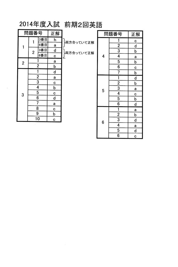 平成26年度入試過去問題 前期2回(英語 解答)(1ページ目)|芝浦工業大学柏高等学校の入試過去問