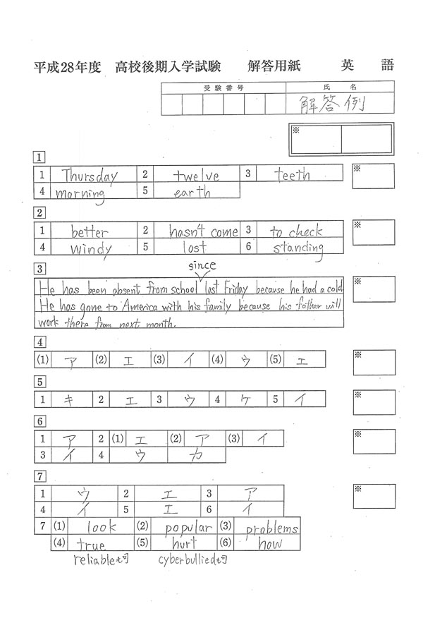 平成28年度入試過去問題 後期(英語 解答)(1ページ目)|芝浦工業大学柏高等学校の入試過去問