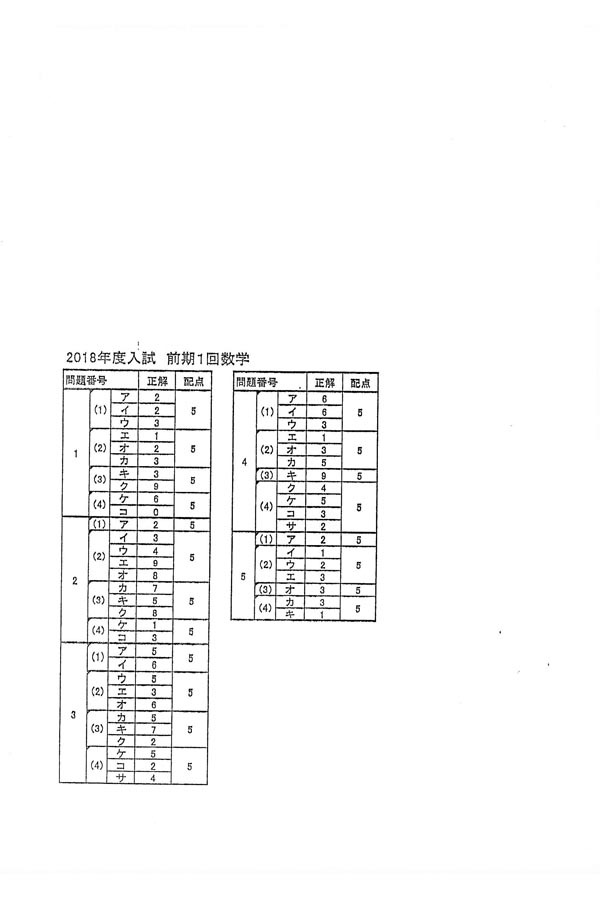 平成30年度入試過去問題 前期第1回(数学 解答)(1ページ目)|芝浦工業大学柏高等学校の入試過去問
