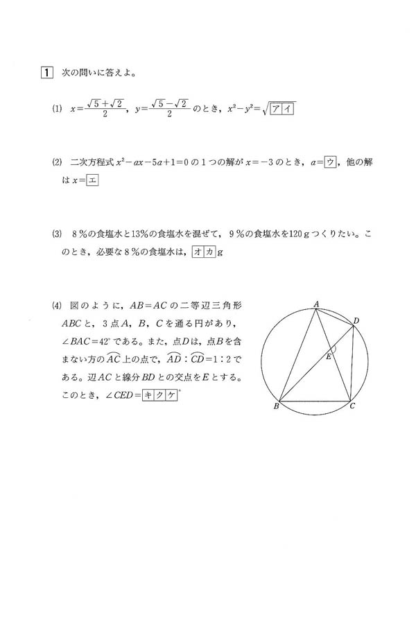 平成25年度入試過去問題 前期2回(数学 問題)(1ページ目)|芝浦工業大学柏高等学校の入試過去問