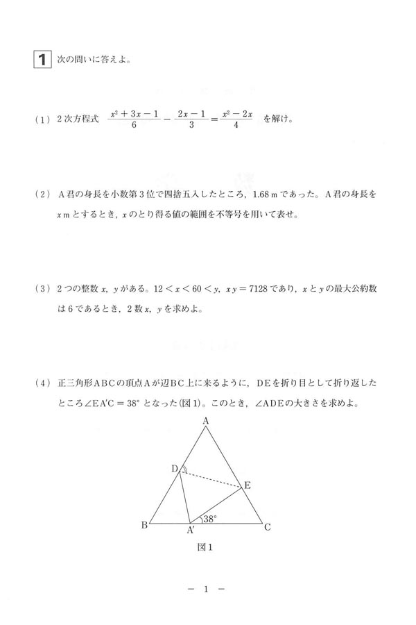 平成28年度入試過去問題 後期(数学 問題)(1ページ目)|芝浦工業大学柏高等学校の入試過去問
