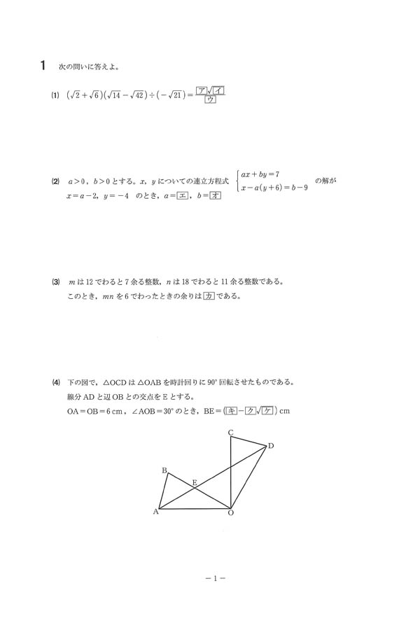 2023年度入試過去問題 第2回(数学 問題)(1ページ目)|芝浦工業大学柏高等学校の入試過去問