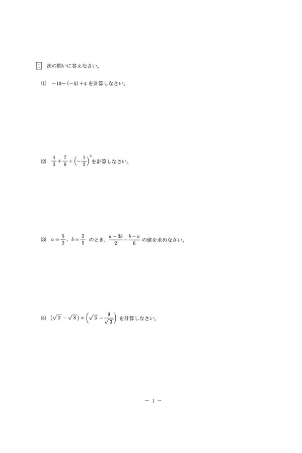 令和4年度入試過去問題 一般(数学 問題)(1ページ目)|麗澤瑞浪高等学校の入試過去問