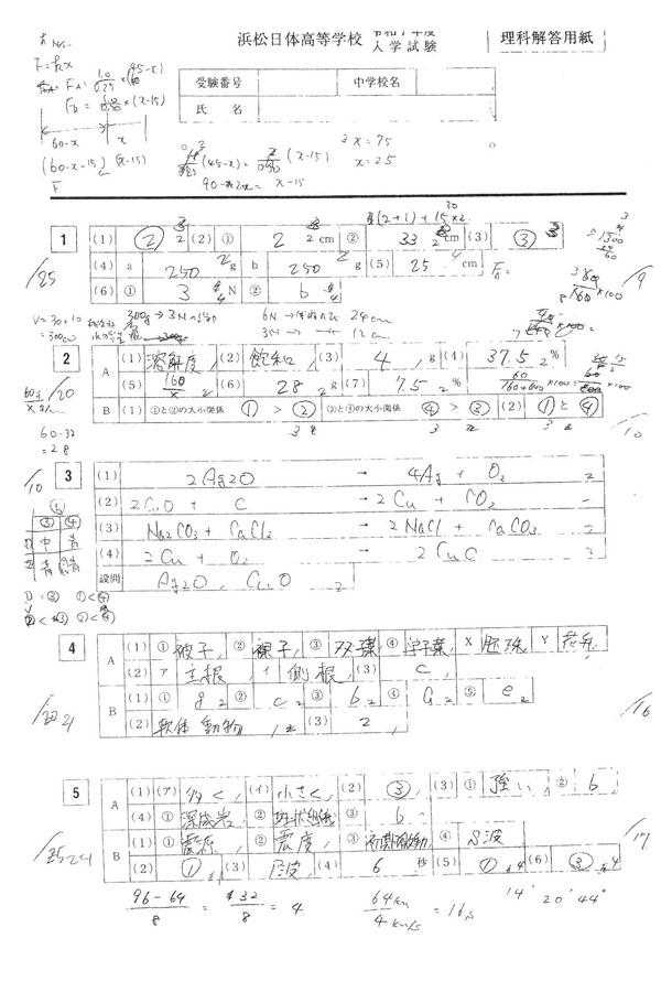 令和7年度入試過去問題(理科 解答)(1ページ目)|浜松日体高等学校の入試過去問