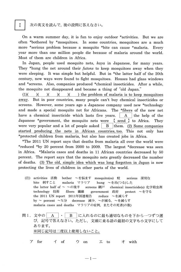 平成27年度入試過去問題(英語 問題)(1ページ目)|愛知高等学校の入試過去問
