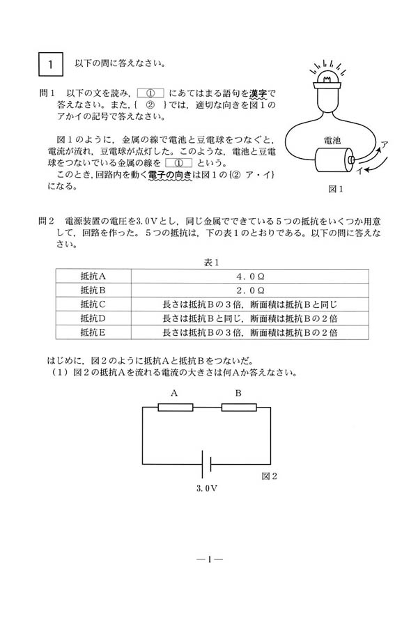 平成27年度入試過去問題(理科 問題)(1ページ目)|愛知高等学校の入試過去問