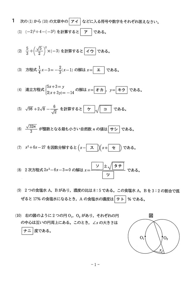 2025年度入試過去問題(数学 問題)(1ページ目)|同朋高等学校の入試過去問