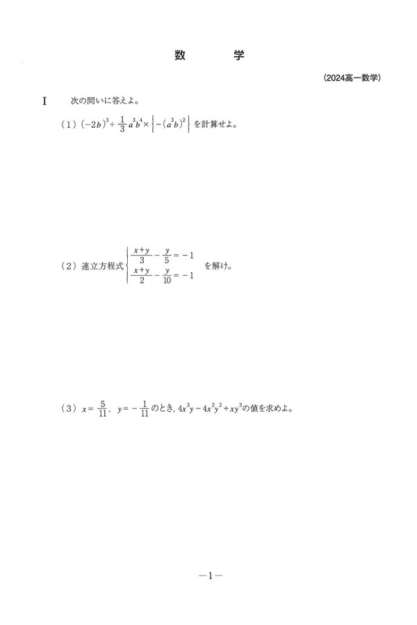 入試過去問(問題)(1ページ目)|名古屋高等学校の入試過去問