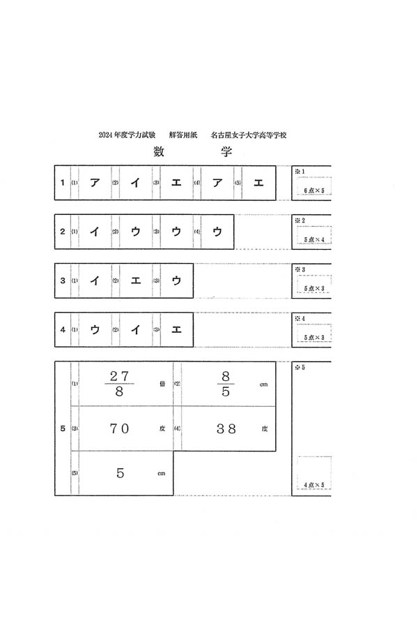 2024年度入試過去問題(数学 解答)(1ページ目)|名古屋葵大学高等学校の入試過去問