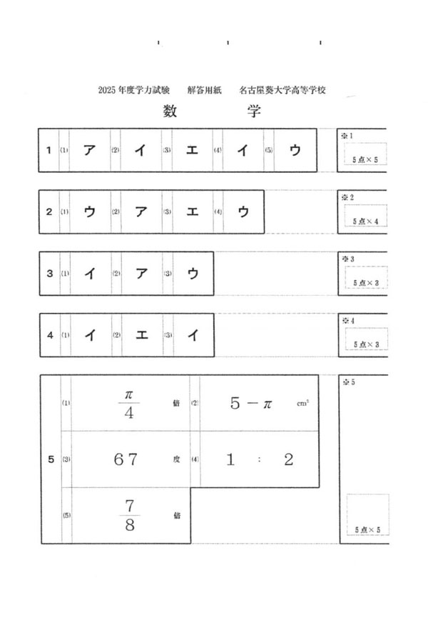 2025年度入試過去問題(数学 解答)(1ページ目)|名古屋葵大学高等学校の入試過去問