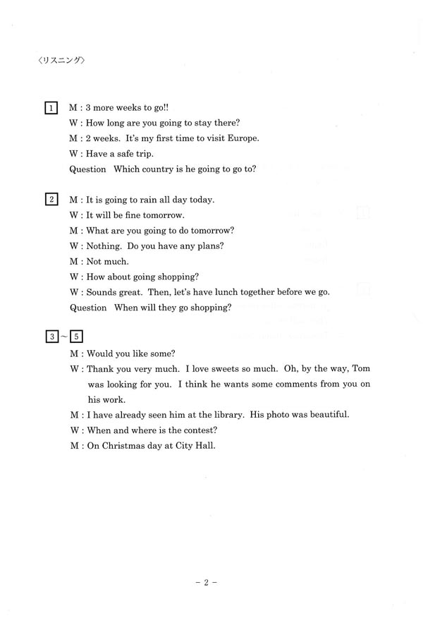 平成31年度入試過去問題(英語 問題)(1ページ目)|中部大学春日丘高等学校の入試過去問
