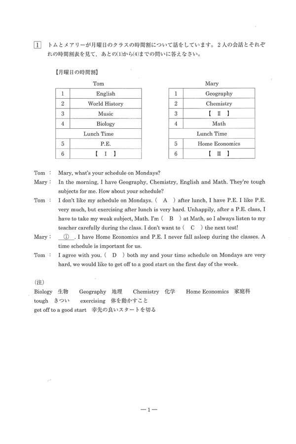 令和6年度入試過去問題(英語 問題)(1ページ目)|誠信高等学校の入試過去問