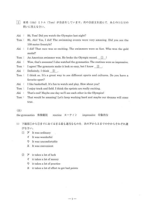 令和7年度入試過去問題(英語 問題)(1ページ目)|誠信高等学校の入試過去問