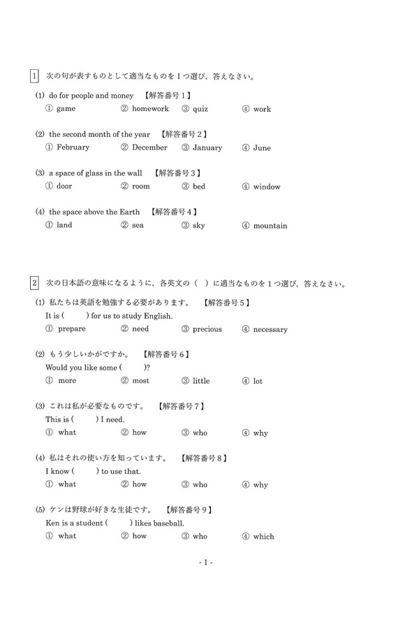入試過去問(問題)(1ページ目)|誉高等学校の入試過去問