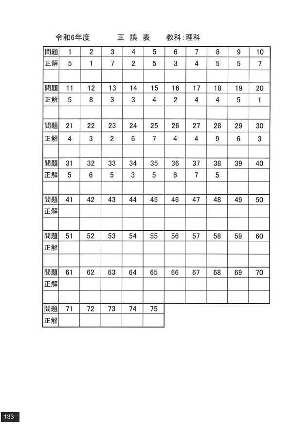 令和6年度入試過去問題 一般(理科 解答)(1ページ目)|海星高等学校の入試過去問