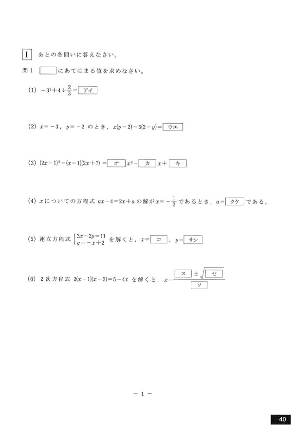 令和6年度入試過去問題 一般(数学 問題)(1ページ目)|海星高等学校の入試過去問