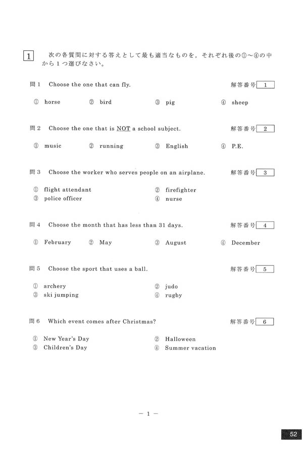 令和6年度入試過去問題 一般(英語 問題)(1ページ目)|海星高等学校の入試過去問