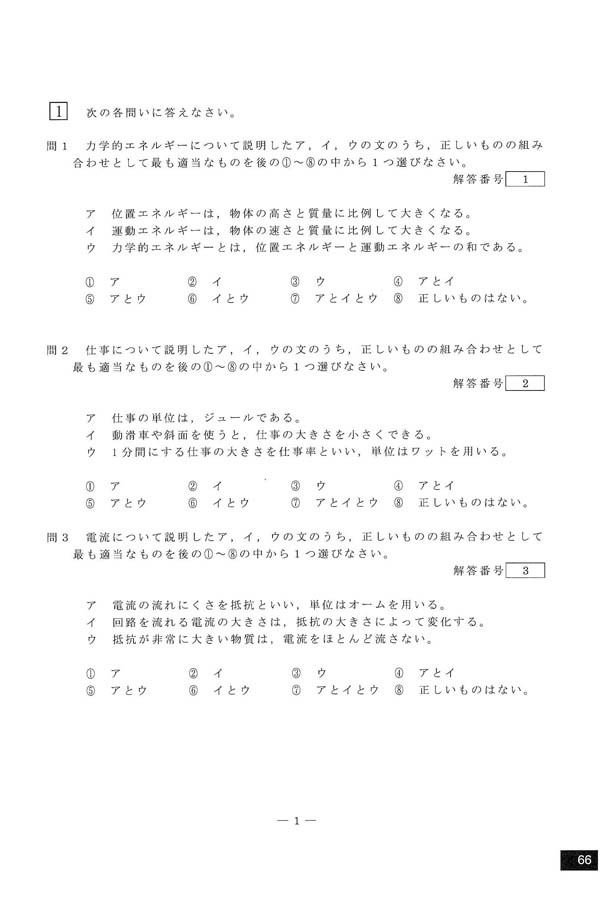 令和6年度入試過去問題 一般(理科 問題)(1ページ目)|海星高等学校の入試過去問