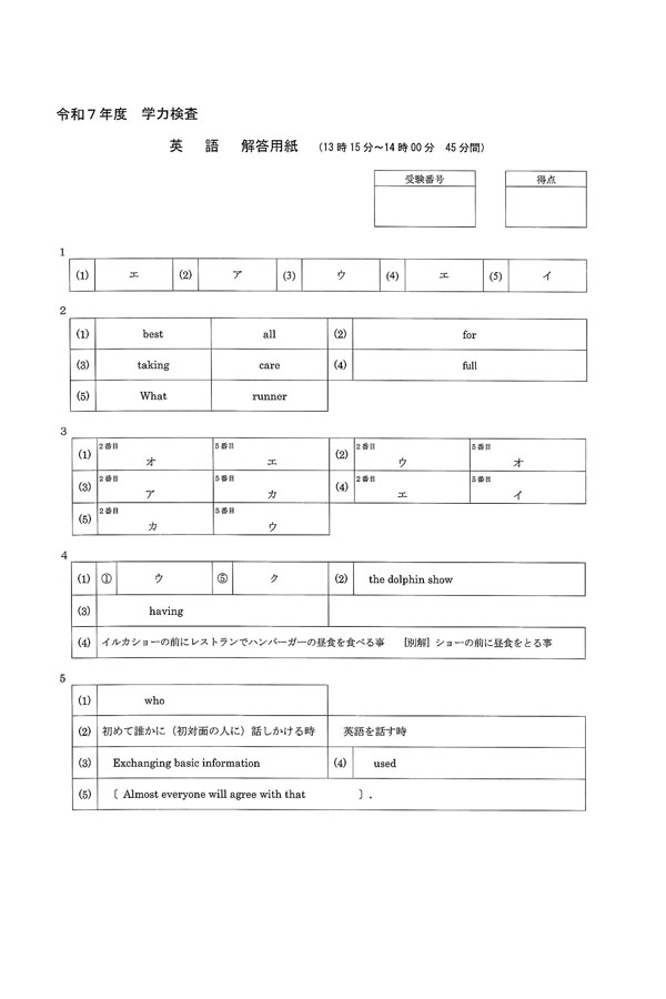 令和7年度入試過去問題(英語 解答)(1ページ目)|津田学園高等学校の入試過去問