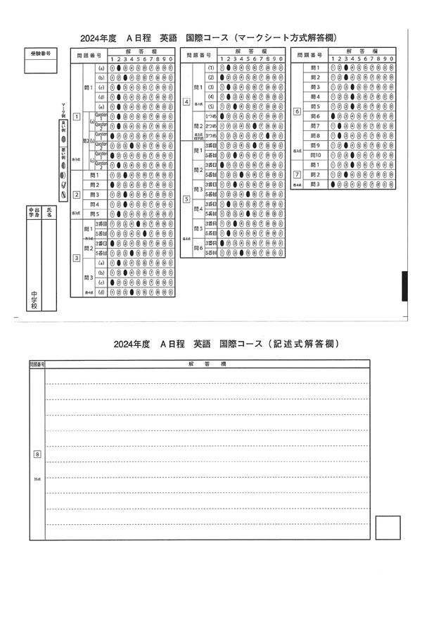 2024年度入試過去問題 A日程<国際コース>(英語 解答)(1ページ目)|京都先端科学大学附属高等学校の入試過去問