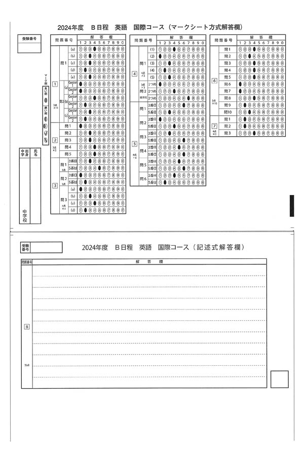 2024年度入試過去問題 B日程<国際コース>(英語 解答)(1ページ目)|京都先端科学大学附属高等学校の入試過去問