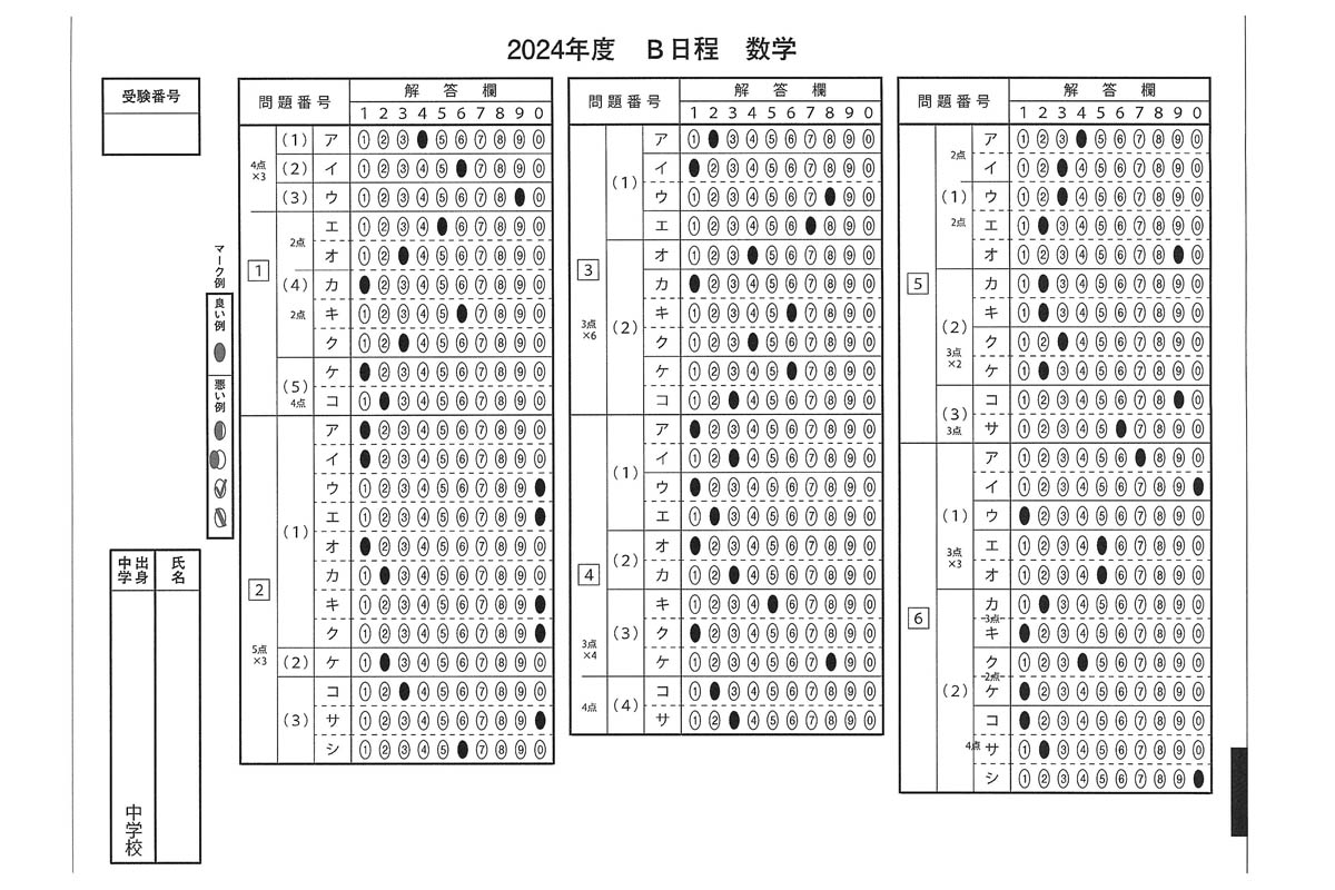 2024年度入試過去問題 B日程(数学 解答)(1ページ目)|京都先端科学大学附属高等学校の入試過去問