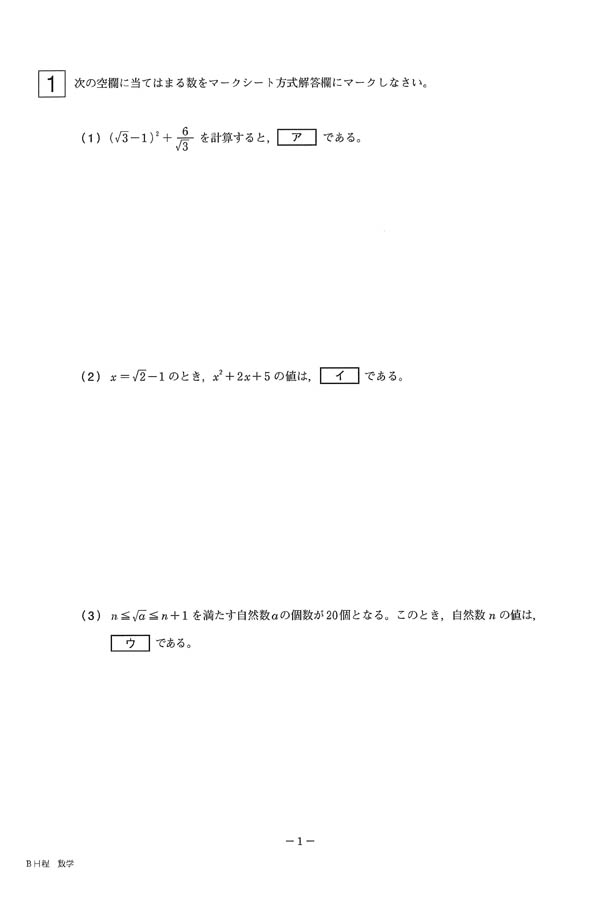2024年度入試過去問題 B日程(数学 問題)(1ページ目)|京都先端科学大学附属高等学校の入試過去問