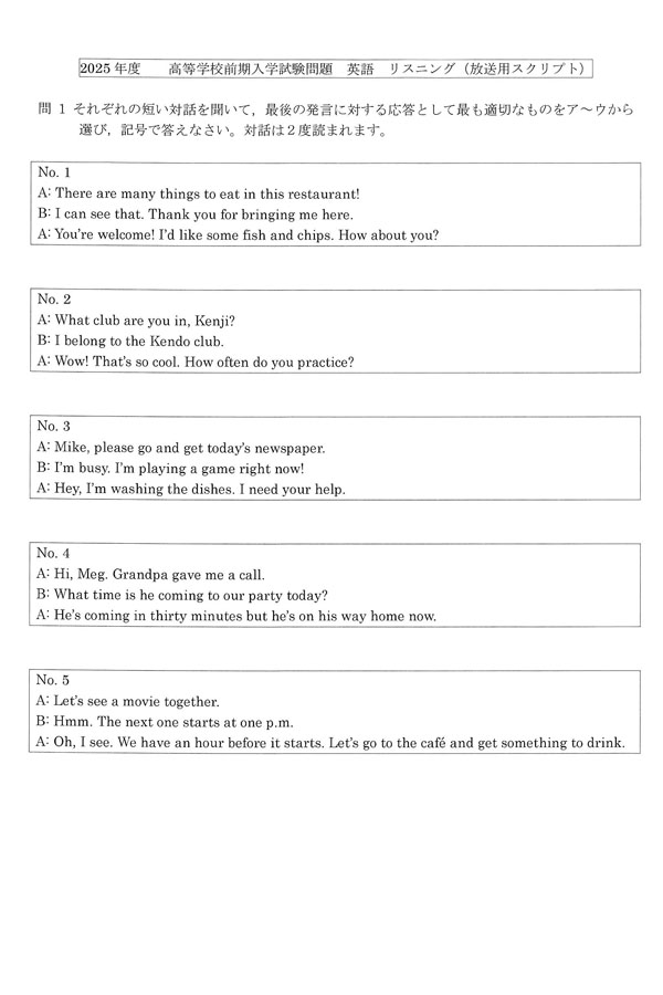 入試過去問(問題)(1ページ目)|京都文教高等学校の入試過去問
