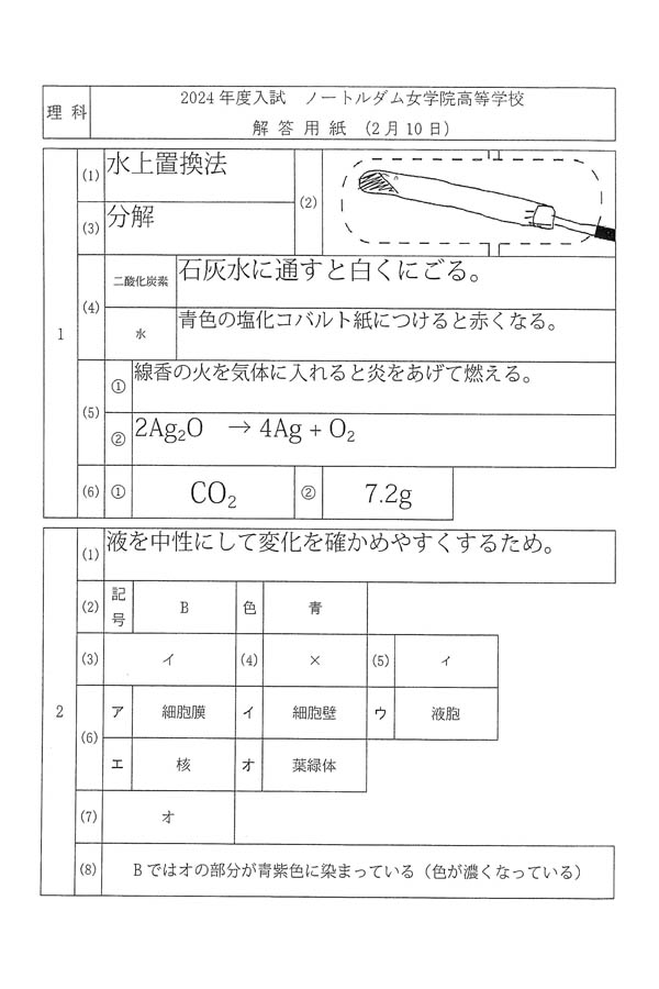 入試過去問(解答)(1ページ目)|ノートルダム女学院高等学校の入試過去問