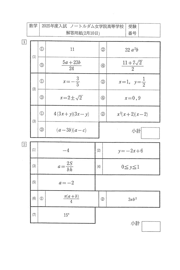 入試過去問(解答)(1ページ目)|ノートルダム女学院高等学校の入試過去問
