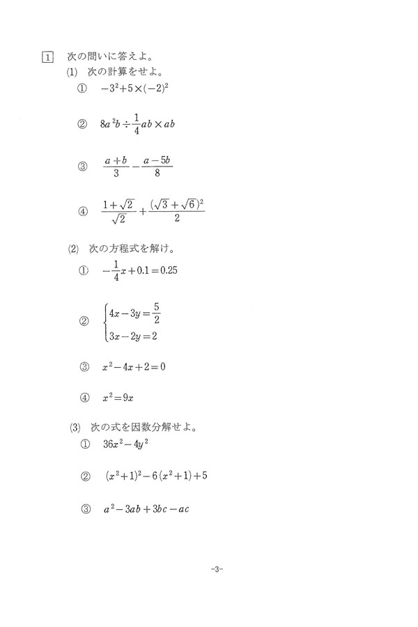 2025年度入試過去問題(数学 問題)(1ページ目)|ノートルダム女学院高等学校の入試過去問