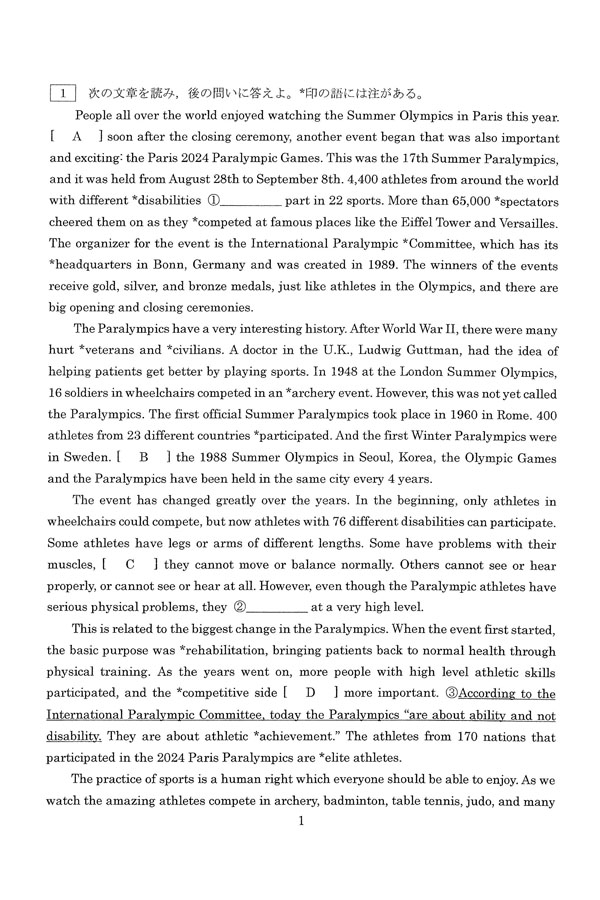 2025年度入試過去問題(英語 問題)(1ページ目)|ノートルダム女学院高等学校の入試過去問