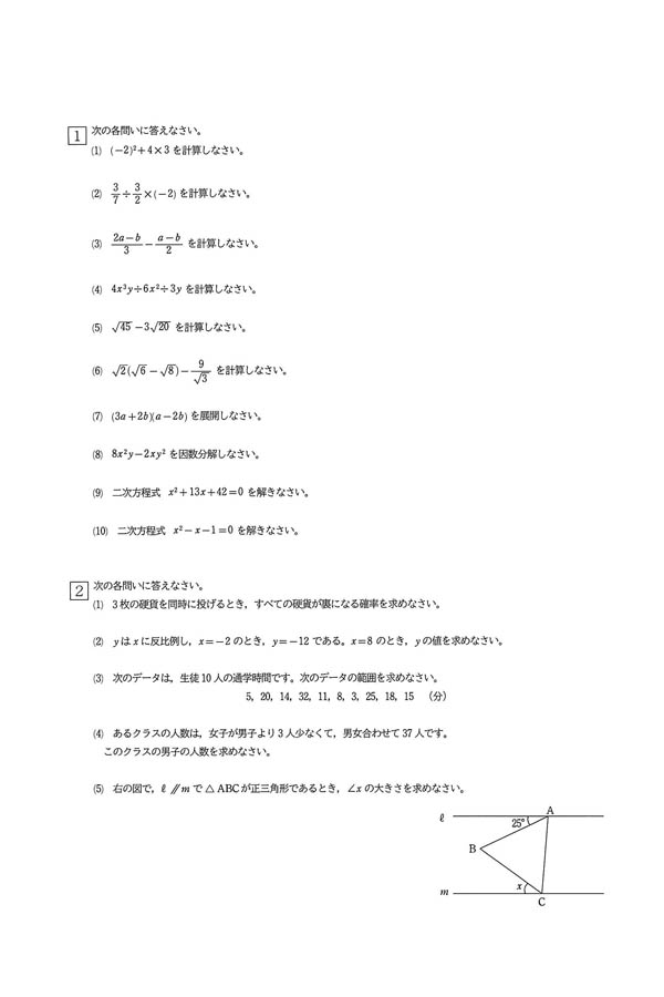 2024年度入試過去問題 A日程(数学 問題)(1ページ目)|京都明徳高等学校の入試過去問