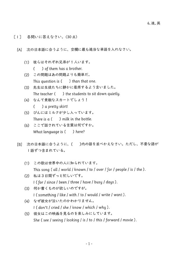 令和6年度入試過去問題(進学コース)(英語 問題)(1ページ目)|京都共栄学園高等学校の入試過去問