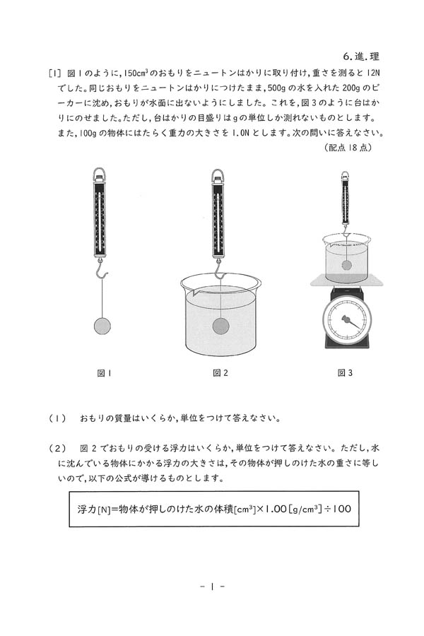 令和6年度入試過去問題(進学コース)(理科 問題)(1ページ目)|京都共栄学園高等学校の入試過去問