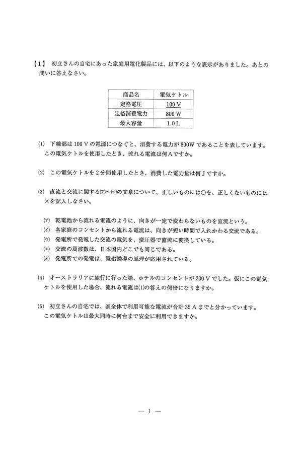 2025年度入試過去問題 (理科 問題)(1ページ目)|利晶学園大阪立命館高等学校の入試過去問