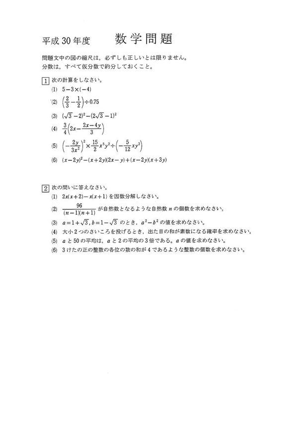 入試過去問(問題)(1ページ目)|浪速高等学校の入試過去問