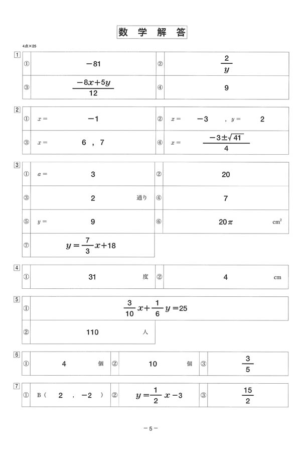 2024年度入試過去問題(数学 解答)(1ページ目)|相愛高等学校の入試過去問