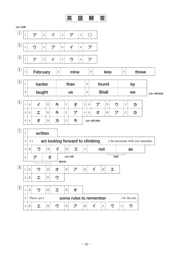 入試過去問(解答)(1ページ目)|相愛高等学校の入試過去問