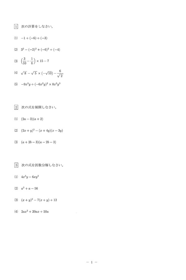 令和7年度入試過去問題(数学 問題)(1ページ目)|大阪成蹊女子高等学校の入試過去問