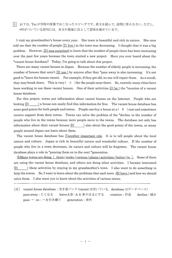 令和7年度入試過去問題(英語 問題)(1ページ目)|大阪成蹊女子高等学校の入試過去問